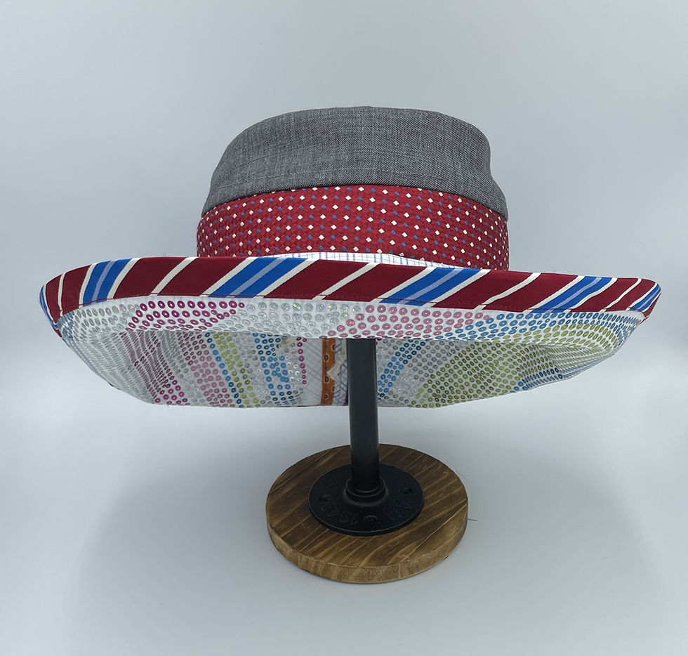 Gray Fineline Glen Plaid Suit Back Opening Sun Hat